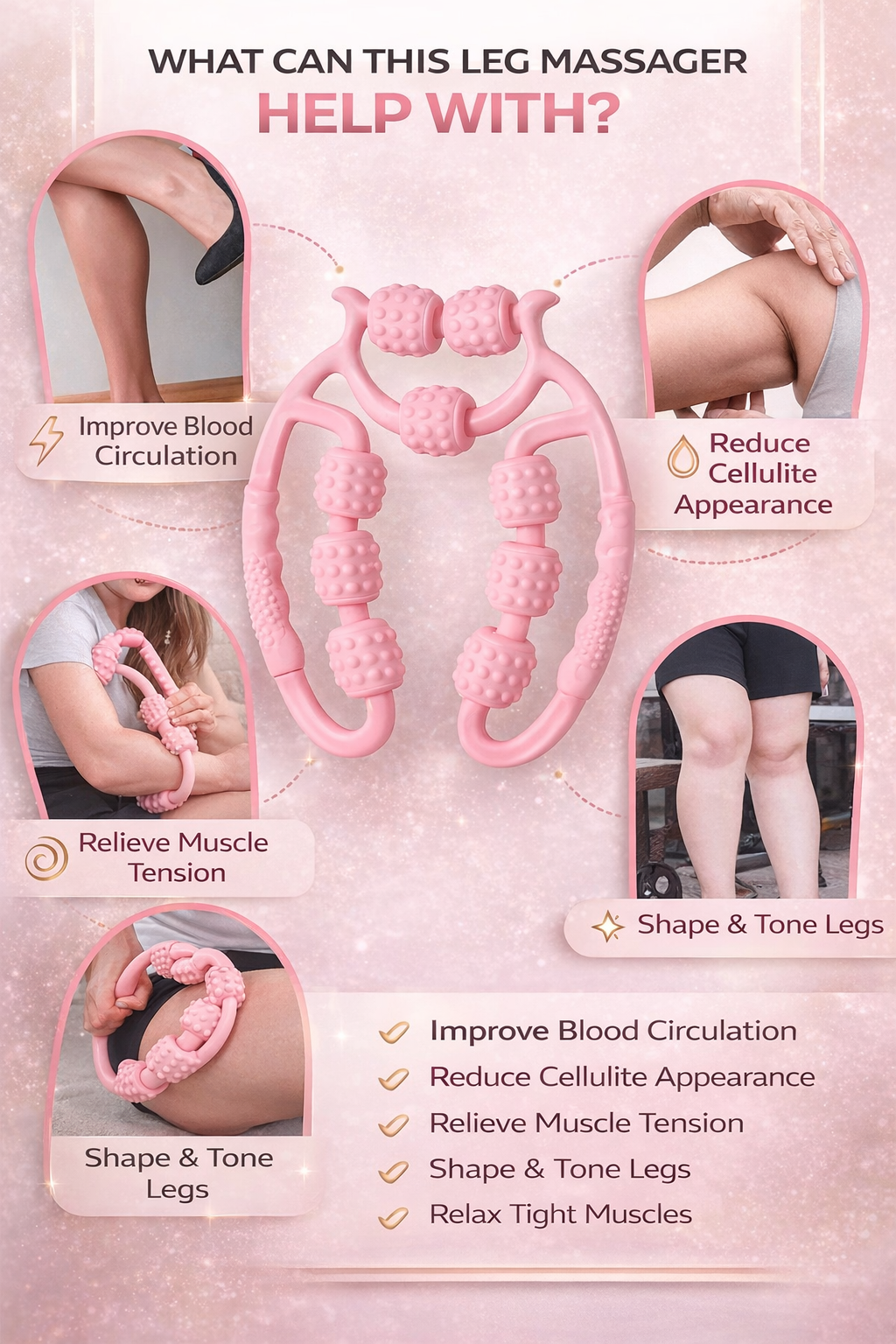 - 💆♀️ Relieve muscle tension and boost blood circulation in legs, arms and thighs.