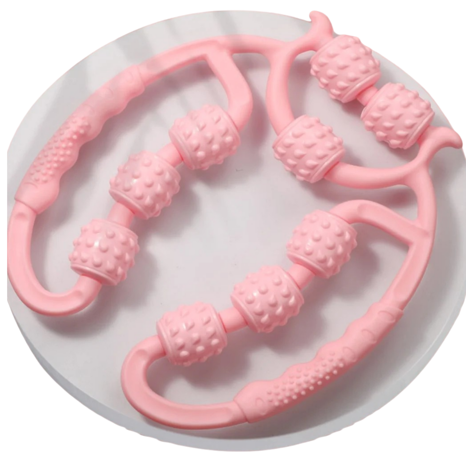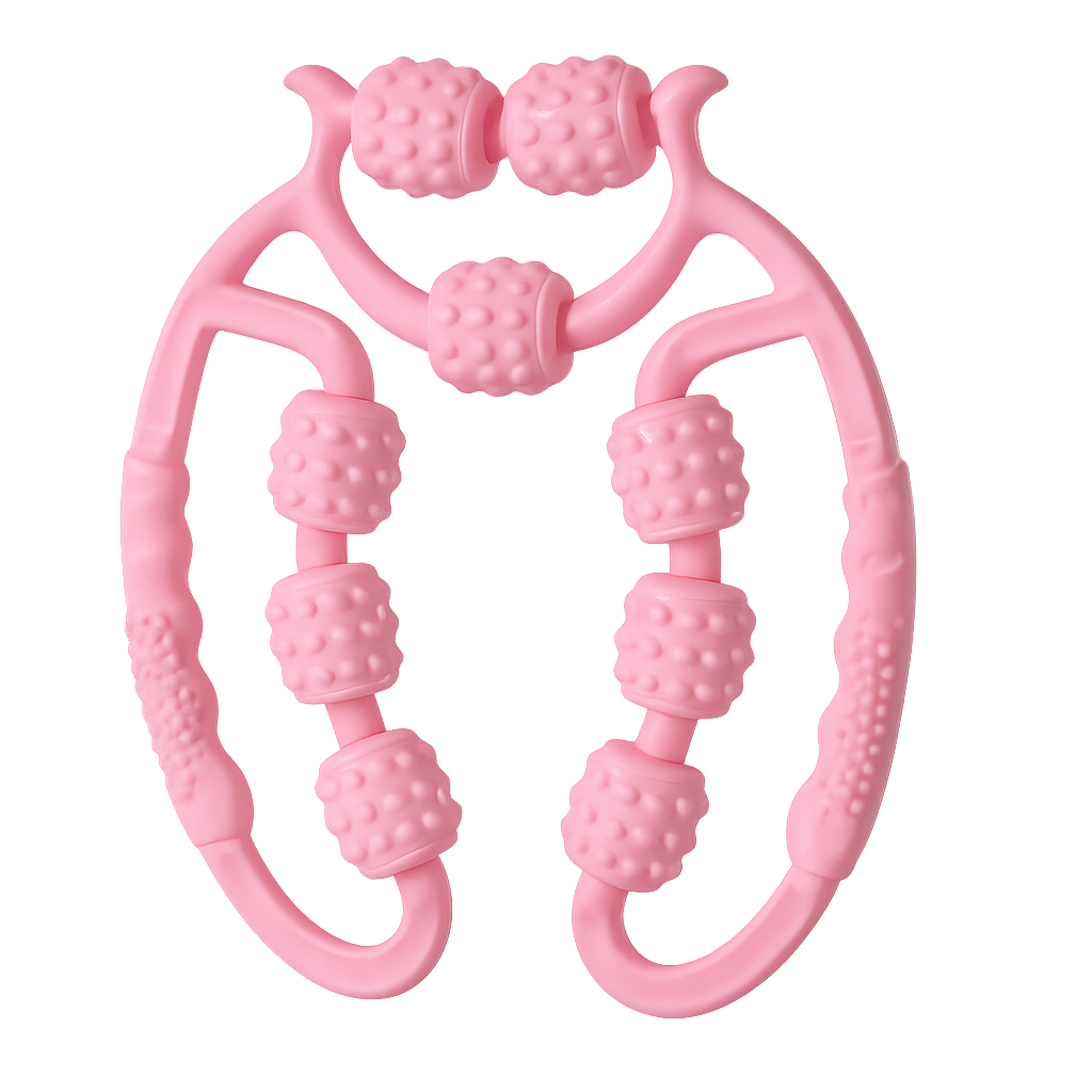 This manual roller massager is designed to help relieve muscle tension, improve blood circulation, and reduce the appearance of cellulite. It can be used on the neck, legs, arms, and back.